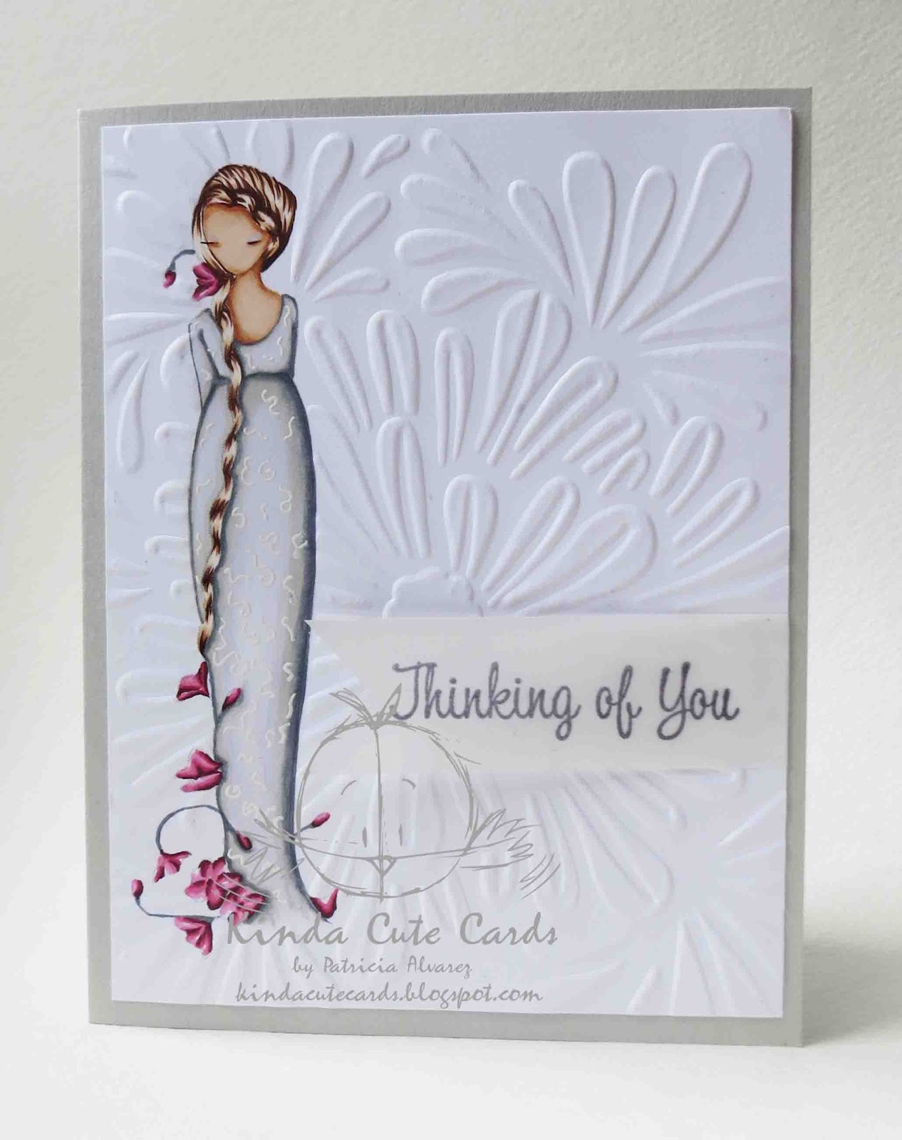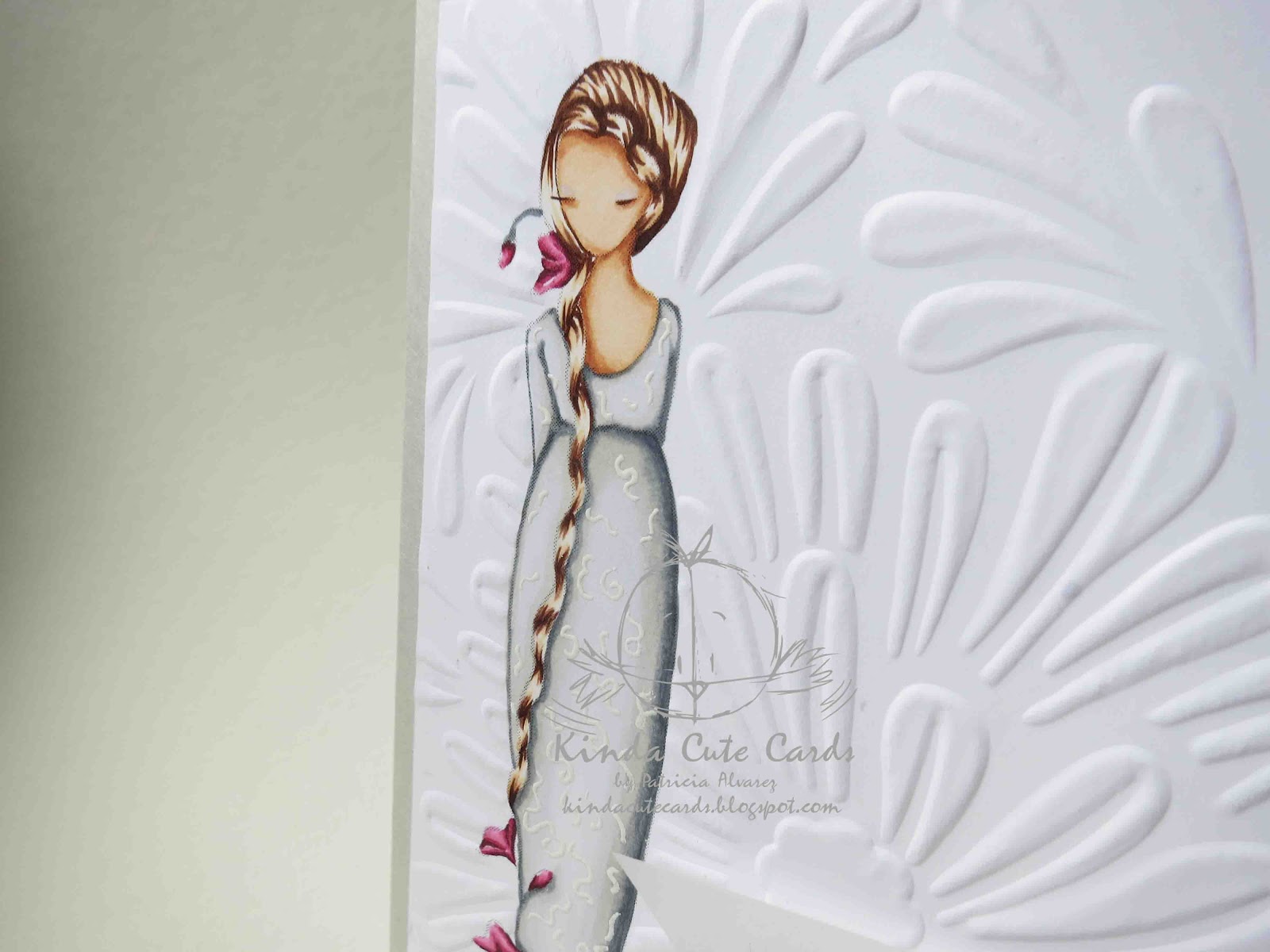 Such a gorgeous image and you colored her beautifully. Love the added embossing on the dress. The CAS design shows her off perfectly.